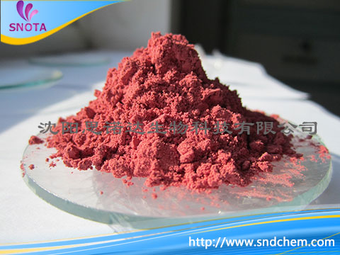 红紫色粉末,溶于水,溶液呈深紫色,溶于碱液呈蓝紫色,不溶于乙醇。