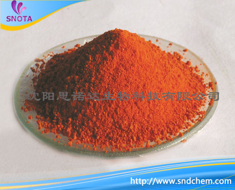 橙黄色针状晶体。溶于黄色有机溶剂中,不溶于水。